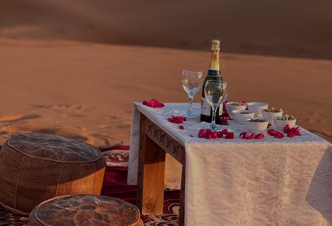 Overnight stay: Luxury desert camp in Merzouga (e.g., Merzouga Luxury Desert Camp or similar).